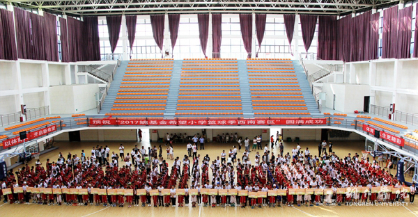 7月14日,由姚基金、中国青少年发展基金会、中国篮协主办,共青团贵州省委、铜仁市人民政府承办,中共铜仁市委宣传部、贵州省青年发展基金会、共青团铜仁市委、铜仁市教育局、铜仁市文广局、铜仁市体育局、美加墨世界杯官方网站协办的2017年姚基金希望小学篮球季西南片区赛在世界杯官网体育馆拉开帷幕。共青团贵州省委副巡视员唐生建,姚基金项目主管马永超,铜仁市委常委、市委宣传部部长夏虹,铜仁市人民政府副市长龙丽红,世界杯官网校长侯长林出席。来自云南、贵州两省共44所希望小学的440名学生参加了开幕式。开幕式由龙丽红主持。