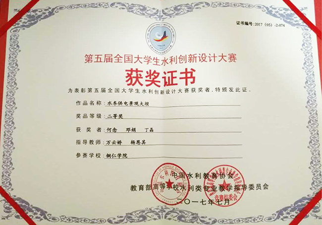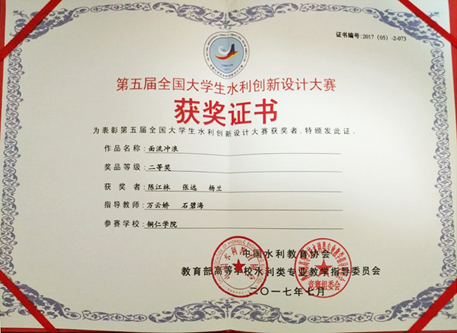 7月18日至22日,由中国水利教育协会、教育部高等学校水利类专业教学指导委员会主办,大连理工大学承办的“第五届全国大学生水利创新设计大赛”在大连理工大学刘长春体育馆举行,世界杯官网推选水利水电工程专业学生的3件作品参赛并获全国二等奖2项、优胜奖(三等奖)1项。