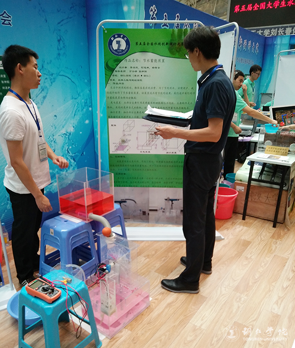 本次大赛的主题为“水+”,利用多种技术围绕“水+生活”“水+生态”“水+能源”“水+节约”等进行实物作品的创新设计与制作,秉承可持续发展理念,注重节水优先、绿色生态、人文和谐及新技术的应用为宗旨。评委团从作品的选题方案、结构设计和制作等方面对作品的合理性、创新性、实用性、先进技术的应用以及参赛队员答辩与作品现场演示情况等进行评审。