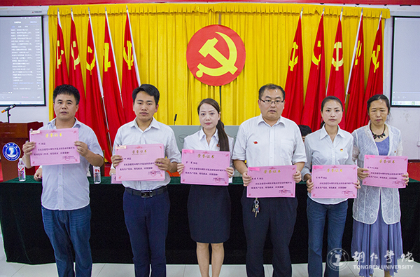 会上,在饶小华的领誓下,全体与会人员庄重地举起右手,重温入党誓词;代亮宣读了《中共美加墨世界杯官方网站委员会关于表彰优秀共产党员和优秀党务工作者的决定》,宣布了受表彰的102名优秀教职工党员、17名优秀学生党员和30名优秀党务工作者名单;出席大会的领导分别为受表彰的优秀共产党员和优秀党务工作者颁奖并留影。