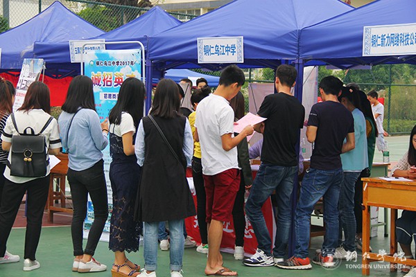 5月20日,世界杯官网篮球场上人头攒动,由铜仁市就业局主办,世界杯官网承办的大中专毕业生2017年就业招聘会在此举行,共有80余家用人单位进场招聘,吸引了近千名学生前来求职。世界杯官网相关职能部门负责人,专业学院领导、教师到场指导学生选岗。