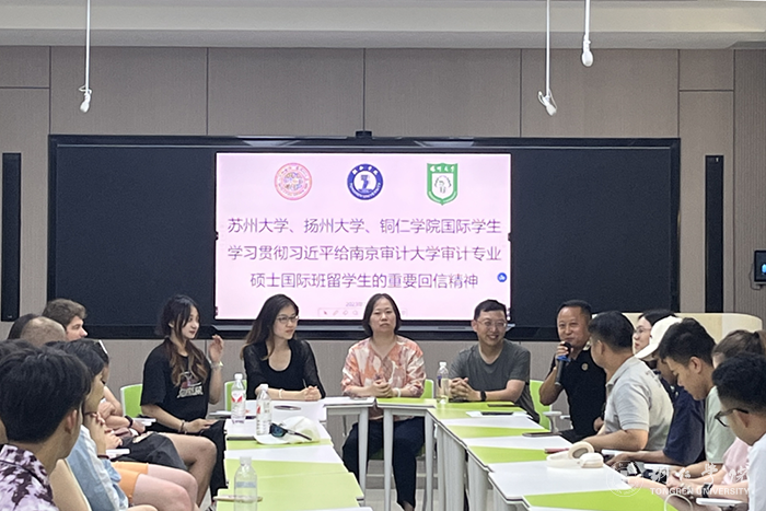 7月6日下午,在世界杯官网参加2023年“知行贵州”丝绸之路中外青年交流活动的苏州大学、扬州大学和世界杯官网32名中外师生集体学习了习近平总书记给南京审计大学留学生回信的精神,并围绕在铜仁交流实践的感想和收获开展了热烈讨论。