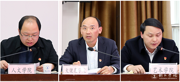 大健康学院党委书记、院长余静,人文学院党委书记、院长孙向阳,艺术学院党委书记徐美结合学习体会和工作实际分别作了交流发言。他们说,高校党员、干部、教职工要把学习宣传贯彻党的十九届六中全会精神作为当前重大政治任务,深刻领悟中国共产党为什么能、马克思主义为什么行、中国特色社会主义为什么好,坚定不移地走中国特色社会主义教育发展道路,不断开创新时代高校教育工作新局面。高等教育办学水平是一个国家发展现状和发展潜力的重要标志,我们要坚持党对高校的领导,坚持立德树人的根本任务,加强和改进高校师资队伍建设,努力办好人民满意的教育。他们表示,将坚决贯彻党的十九届六中全会精神,坚定信心、勇于担当、实干笃行、奋发有为,在新的赶考之路上奋力谱写二级学院高质量发展的新篇章,为全面推进学校事业高质量发展、推动各项决策部署如期落地贡献力量。