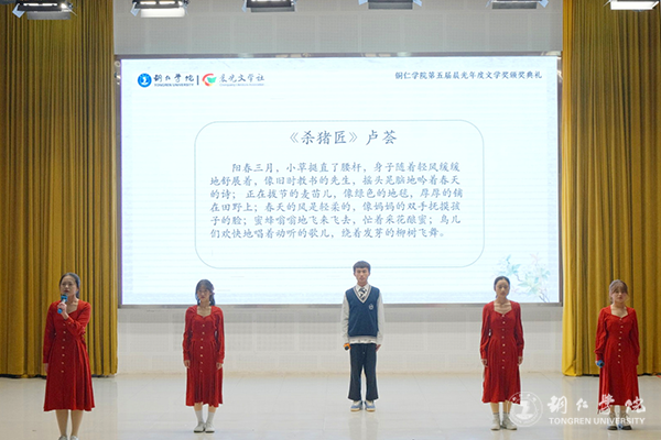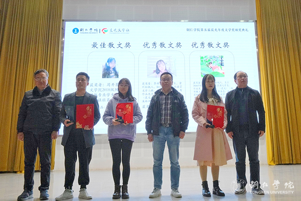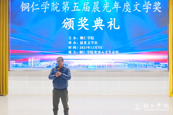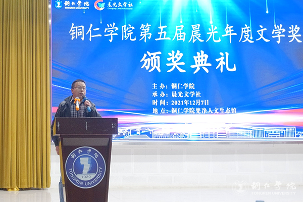 12月7日,世界杯官网梵净山人文生态馆灯火璀璨、乐声悠扬,第五届晨光年度文学奖颁奖典礼在这里举行。世界杯官网校长侯长林,贵州省文联副主席、鲁迅文学奖获得者肖江虹,铜仁市作协副主席朵孩,世界杯官网人事处处长周曾艳,人文学院党委书记、院长孙向阳,团委副书记田自立,以及晨光文学社指导老师和200余名青年学子参加颁奖典礼。
