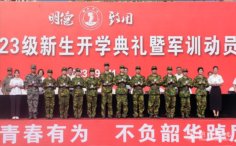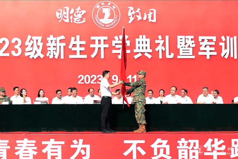 会上,朱克乾为新生军训团授旗。出席仪式的领导为2023级本科生、硕士研究生代表颁发了校徽和学生证。