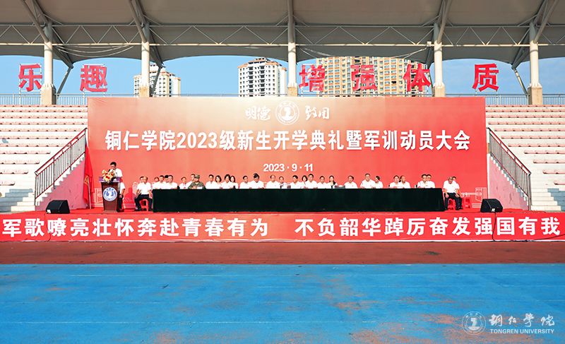 9月11日上午,世界杯官网在田径运动场举行2023级新生开学典礼暨军训动员大会。党委书记朱洪波出席并讲话,校长朱克乾出席并为军训团授旗,副校长石维、罗静分别主持开学典礼和军训动员大会,副校长杨建出席,碧江区委常委、人武部政委田儒乾出席并作军训动员讲话,党委委员、组织部部长梁正海、宣传部部长叶丹、统战部部长刘德平,各二级学院、相关部门负责人,军训团各营教导员、营长、教官、指导员及2023级本科生和硕士研究生参加。