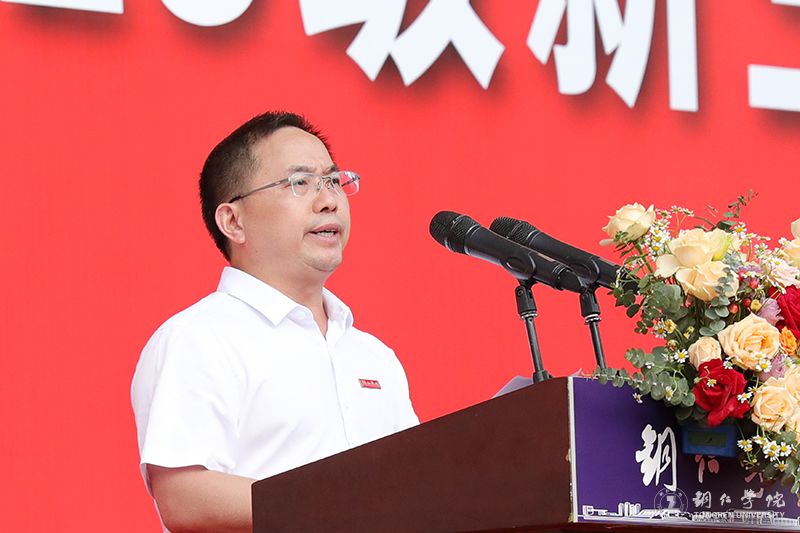 老生代表、文学与传媒学院2021级汉语言文学二班张俊对同学们说,也许大家心中此时充满着期待与迷茫,但要在期待着大学生活绚丽多彩的同时,不断地“敢问路在何方”。即将开始的军训,不仅是一次强健体魄的训练,更是一次锻造钢铁意志的机会。希望同学们以梦为马,共赴一场青春的盛宴,开启一段梦幻的大学之旅。