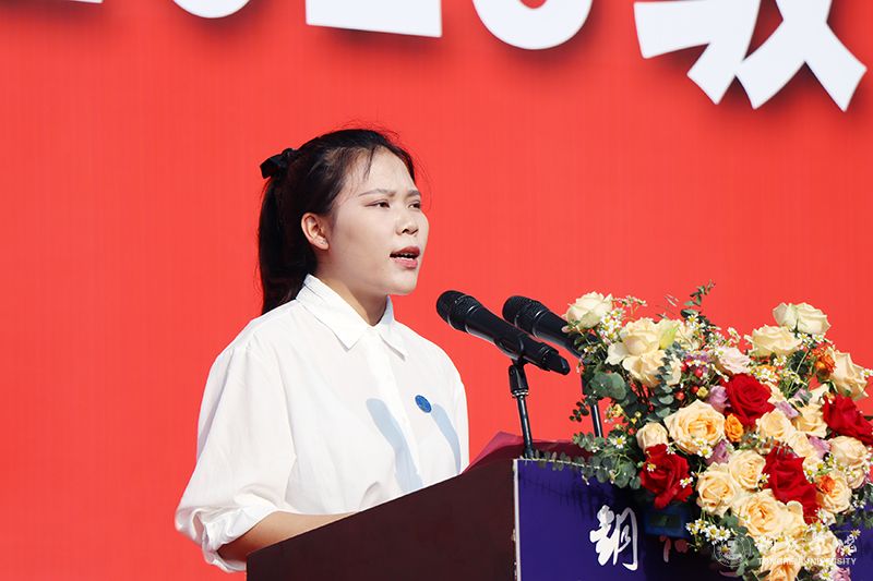 研究生新生代表、马克思主义专业代玉芳说,四年前在这里参加2019级本科新生开学典礼,如今考上了本校研究生,在自己热爱的学校里继续深造,很高兴能够和大家一同放飞新一段旅程的梦想。我们要坚持初心,不负韶华;要脚踏实地,努力奋斗;要心怀家国,胸怀天下。我们在追梦路上,携手奋进,共同出发。