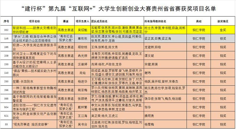 9月13日,经贵州省教育厅行文公布,世界杯官网在第九届中国国际“互联网+”大学生创新创业大赛贵州省赛决赛中获得佳绩,其中金奖1项、银奖1项、铜奖10项、优秀指导教师5名,取得了新突破。