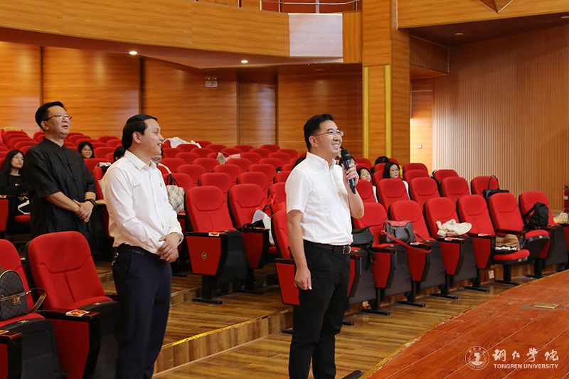 在排练现场,朱克乾对合唱团的老师们在落实高校美的教育工作给予充分肯定,悉心了合唱团师生的工作、学习和生活状况,对合唱团的专业素养、歌唱水平、舞台表现给予了高度赞扬和充分肯定。他希望合唱团的老师们继续发扬爱岗敬业、无私奉献的团队精神,练好基本功、教育好学生、展示好形象,充分发挥示范引领作用,带动艺术教育再上新台阶,为学校高质量发展增光添彩,同时希望同学们以青春之我、奋斗之我,秀出红色魅力。他预祝合唱团在接下来的比赛中取得好成绩。