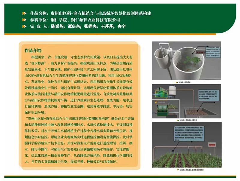 大赛结合行业需求,共设置智慧渔业技术赛道、智慧渔业装备赛道和智慧渔业系统赛道3个比赛赛道。世界杯官网水产养殖学专业学生结合实际,参加了智慧渔业系统赛道。经现场答辩、评委提问等环节的激烈角逐,最终,学生作品《贵州山区稻鱼有机结合与生态循环智慧化监测体系构建》获二等奖。