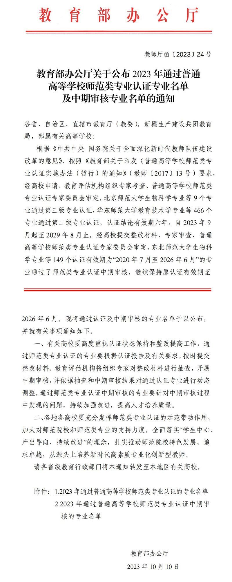 据悉,根据教育部相关文件规定,凡通过师范类二级认证的专业,在认证有效期内入学的师范生,仅需通过教育部教师资格证笔试成绩后,参加校内自行组织的中小学教师资格面试合格后,即可取得相应教师资格。
