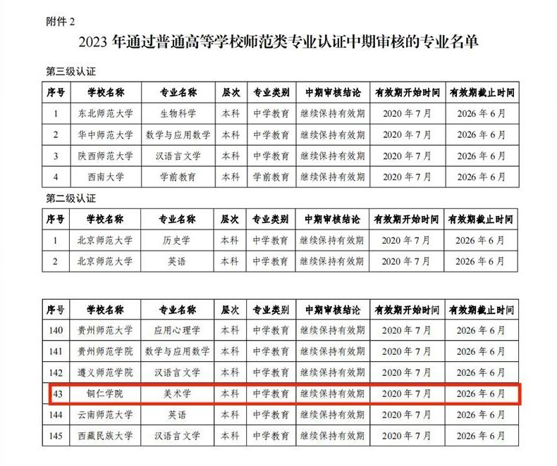 世界杯官网美术学专业于2020年顺利通过师范(二级)专业认证,系全国首批通过师范类二级认证的地方高校美术学专业,也是贵州首批通过的师范专业二级认证的五个试点专业之一,标志着世界杯官网应用转型发展在专业建设方面取得新的突破。