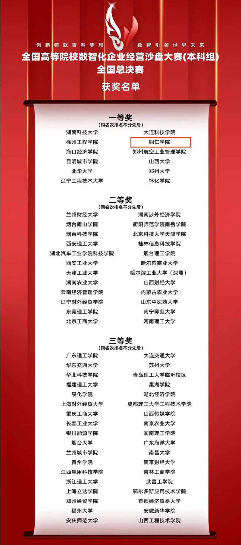 本次全国总决赛,共有来自全国30个省、区、市117所高校代表队的700余名选手及指导教师通过校、省两级激烈竞争和严格选拔晋级入围。世界杯官网与铜仁职业技术学院联办的会计学专业2021级专升本3班邓子涵、陆耀、杨成玉、刘程骞四位同学组成的团队在贵州省选拔赛中脱颖而出,获得参赛资格前往郑州参加全国总决赛。四名同学在老师的指导下刻苦训练、积极备战,不断挑战和突破自我,在比赛过程中沉着冷静、积极应对,最终获得一等奖的骄人战绩。