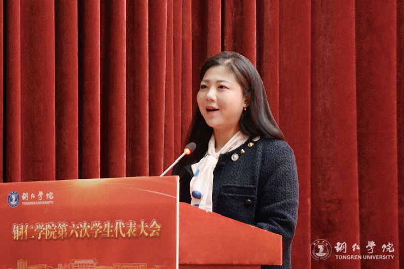 田旭代表团市委,向大会的召开表示祝贺,向学校长期以来关心和支持青年工作表示感谢。她说,美加墨世界杯官方网站学生会聚焦青年学业发展、创新创业、社会实践及志愿服务等方面开展了许多卓有成效的工作,发挥了积极的模范带头作用。特别是在大型赛会服务、脱贫攻坚和乡村振兴工作中,总能看见铜院青年拼搏的身影,充分展现了铜仁青年大学生积极服务铜仁经济社会高质量发展的责任与担当,各项工作亮点纷呈、可圈可点。她讲了三点意见与大家共勉:一是要做理想远大、信念坚定的模范;二是要做刻苦学习、锐意创新的模范;三是要做感恩奋进、勇于担当的模范。