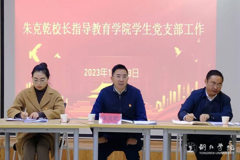朱克乾首先走访看望了宋健和黄守盼两位青年教师,并与他们进行了交谈,了解他们的工作、学习、生活情况和需要解决的困难等。随后,他到教育学院学生党支部,全程参与了该支部11月份的主题党日活动。