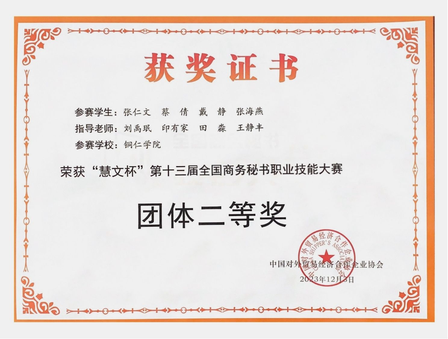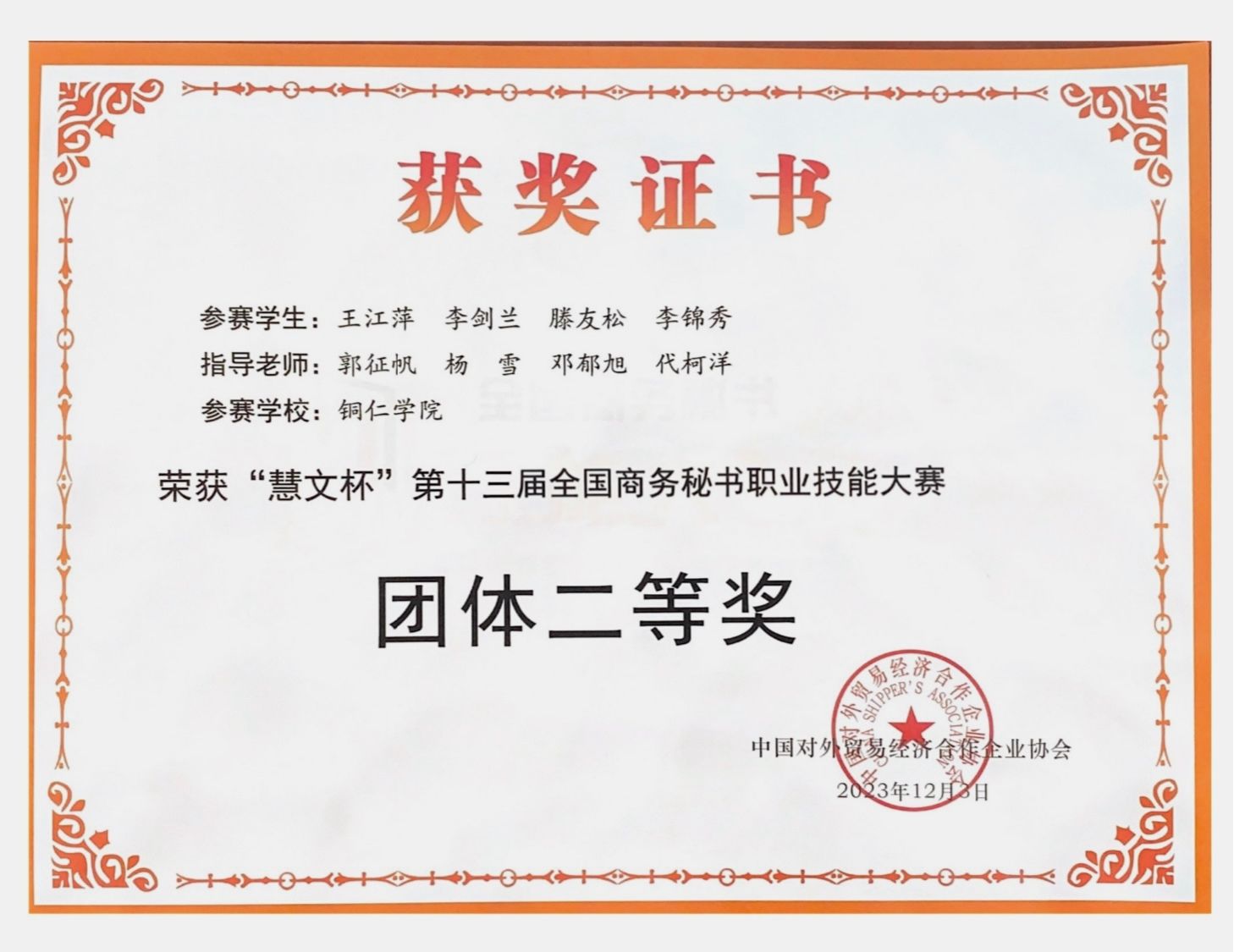 12月1日至3日,由中国对外贸易经济合作企业协会主办的“慧文杯”第十三届全国商务秘书职业大赛在浙江警官职业学院举行。包括世界杯官网在内的全国73所院校的108支代表队近600名师生相聚西子湖畔,同台竞技。世界杯官网团队荣获团体二等奖2项。