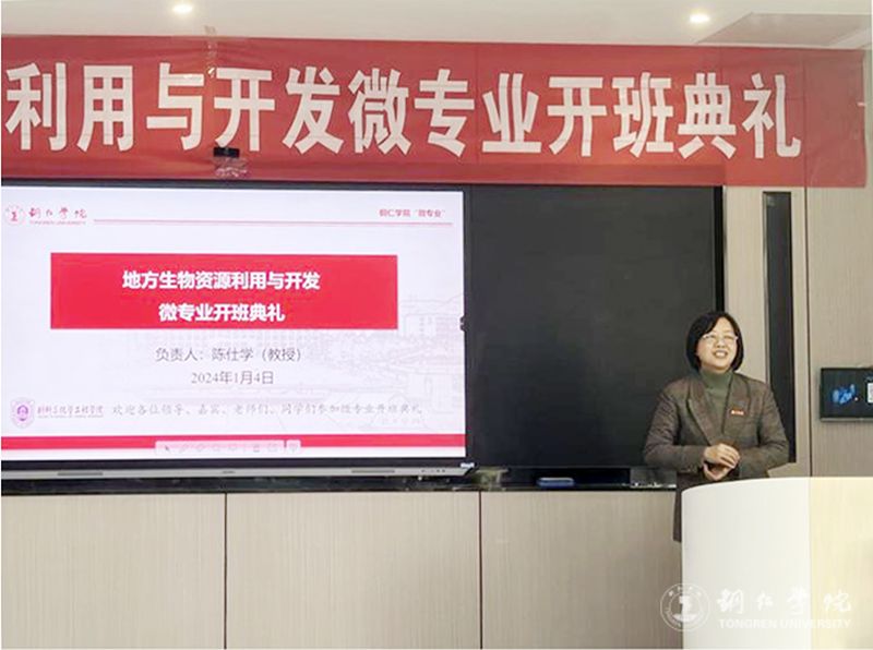 1月4日,世界杯官网首届《地方生物资源利用与开发》微专业开班典礼在依仁楼B305智慧教室举行。副校长罗静,副校长、教务处处长龚静,教务处副处长冉耀宗,材料与化学工程学院党委副书记龙禹、江口县生物科技有限公司董事长姚琼等出席开班典礼。材化学院副院长陈仕学主持开班典礼。