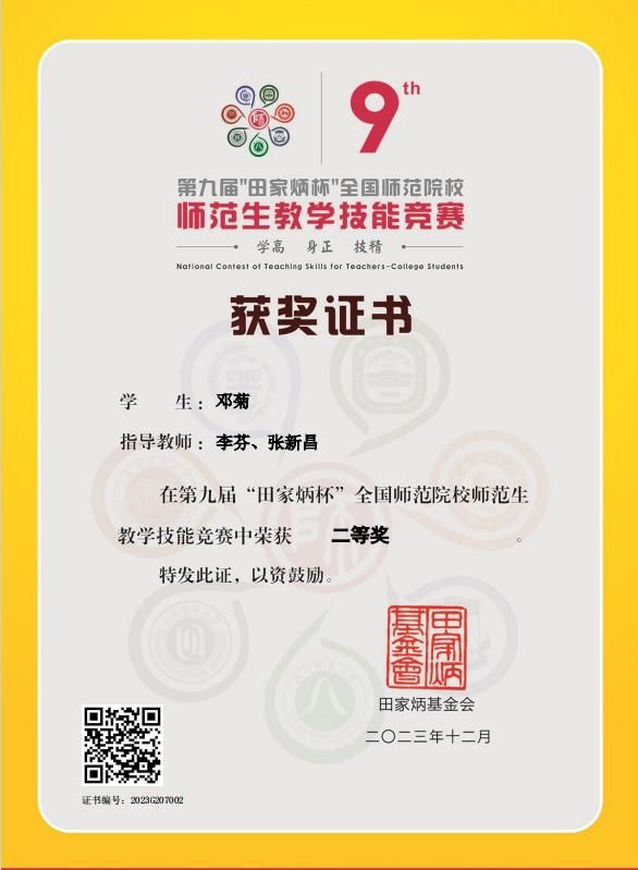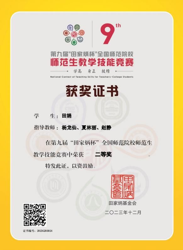 近日,第九届“田家炳杯”全国师范院校师范生教学技能竞赛决赛在浙江师范大学落下帷幕。全国共计226所学校1611名选手参加了本次赛事,经过激烈的角逐,世界杯官网参赛选手获得国家级二等奖2项、三等奖1项、优胜奖2项。