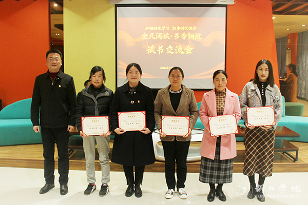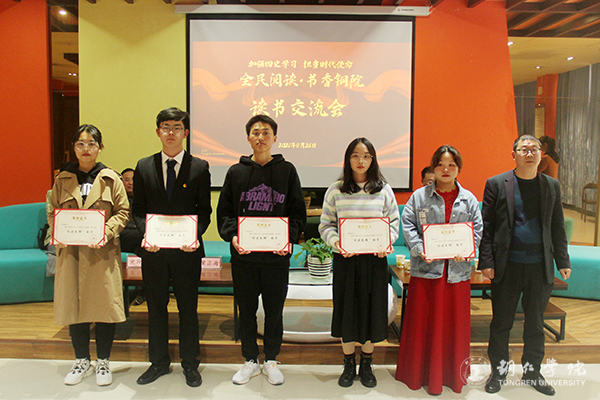 交流会上,举行了2021年“全民阅读·书香铜院”优秀部门和阅读先锋获得者颁奖仪式,表彰在一年的阅读推广活动中所涌现出来的“优秀读书部门”和“阅读先锋”。最后,读书交流会在艺术学院黄杨欢同学演唱歌曲《奋斗的时代在一起》的优美歌声中结束。