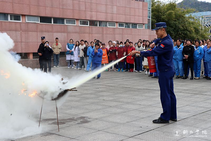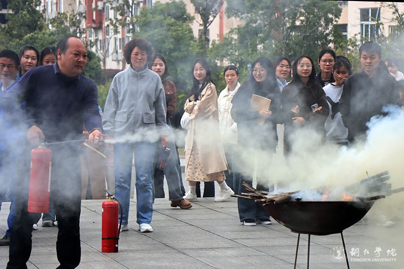 随后,进行消防安全应急演练。随着警报响起,同学们有序沿着消防道路,弯着腰,用手、袖口等捂着嘴鼻,迅速有序地疏散到校园的安全地带集合。大家集合完毕,消防人员向大家讲解、示范了灭火器的使用方法及注意事项,并指导世界杯官网师生进行现场灭火演练。现场的师生纷纷体验了灭火器的操作与使用。