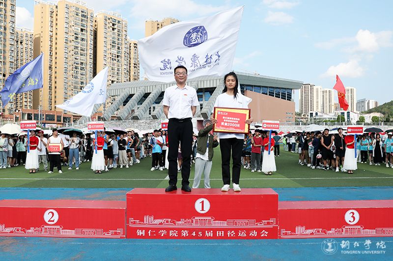 闭幕式上,裁判长宣读了比赛结果。本届运动会,在学生团体总分奖方面,大数据学院、大健康学院并列获得第一名,文学与传媒学院获得第二名,教育学院获得第三名;大数据学院、农林工程与规划学院、材料与化学工程学院荣获精神文明奖;大健康学院荣获体育道德风尚奖。在教职工团体总分奖方面,大数据学院工会组、大健康学院工会专业组荣获一等奖第一名。出席闭幕式的领导为获奖集体和个人进行了颁奖。