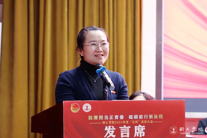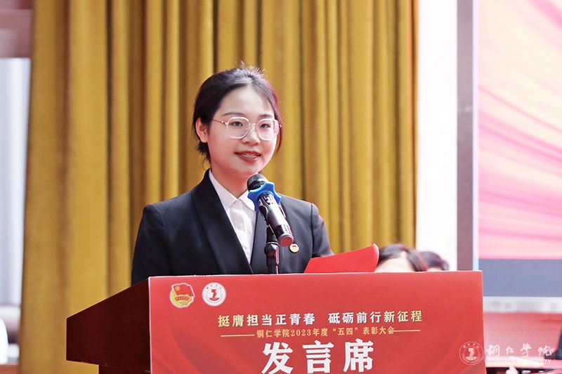 优秀共青团干部代表、大数据学院团总支书记邓韬结合2023年的工作,分享了她的成就和荣誉,并鼓励新时代青年,坚定理想信念、勇担时代重任,发扬斗争精神、保持奋斗激情,在强国建设、民族复兴接力赛中贡献青春力量。