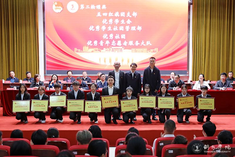 大会在庄严的国歌声中拉开帷幕。罗静宣读了表彰文件;出席大会的领导为获表彰的先进集体和个人进行了颁奖。此次表彰大会,共有4个五四红旗团总支、11个五四红旗团支部、4个优秀学生会、4个优秀社团管理部、4个优秀社团、3个优秀青年志愿者服务大队、4名优秀共青团干部(教师)、72名优秀共青团干部(学生)、101名优秀共青团员、72名优秀青年志愿者获得了表彰。