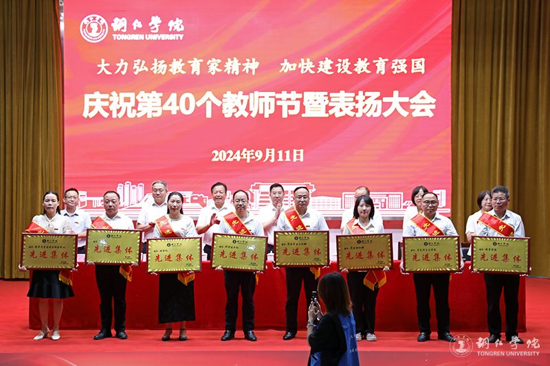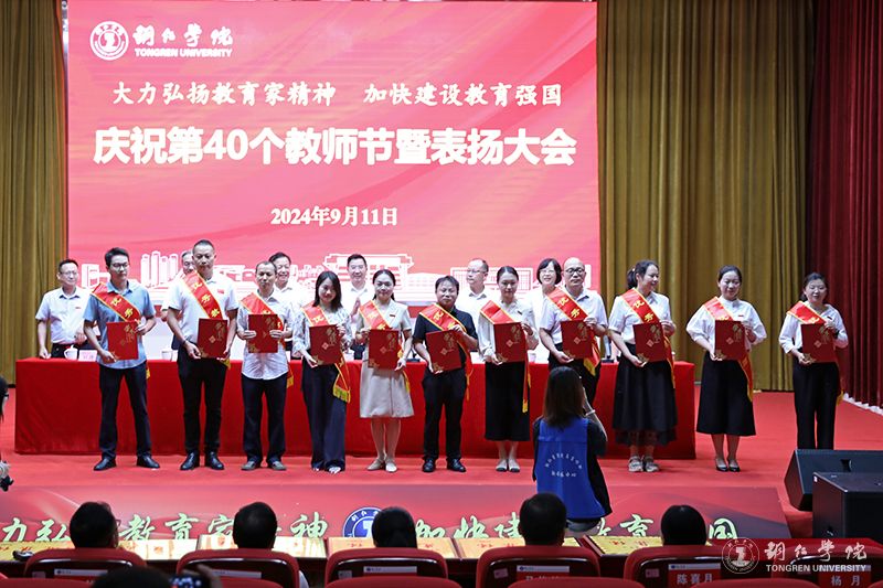 为贯彻落实习近平总书记重要讲话精神,用教育家精神铸魂强师,推进新时代立德树人工程,9月11日,世界杯官网在梵净山人文生态馆召开庆祝第40个教师节暨表扬大会。党委书记朱克乾出席会议并讲话;校长石维主持会议;纪委书记吴先佳,副校长罗静、杨建、龚静,党委委员、统战部部长刘德平出席会议。