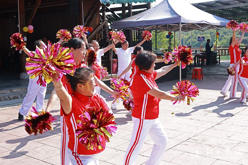 在大明边城水寨,离退休教职工举行了丰富多彩的文艺汇演。活动以退休支部为主体,各支部组织党员和群众自导自演20余个节目,从大合唱《我和我的祖国》开始,有歌舞、武术、京剧等表演,最终在老同志们齐唱《最美不过夕阳红》中结束。