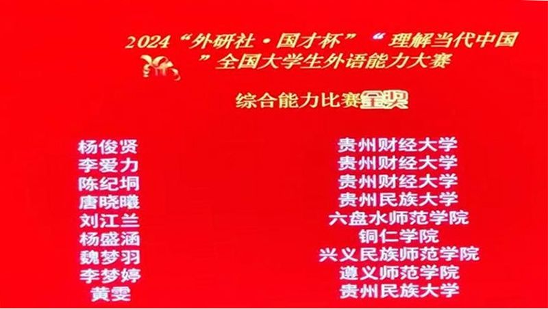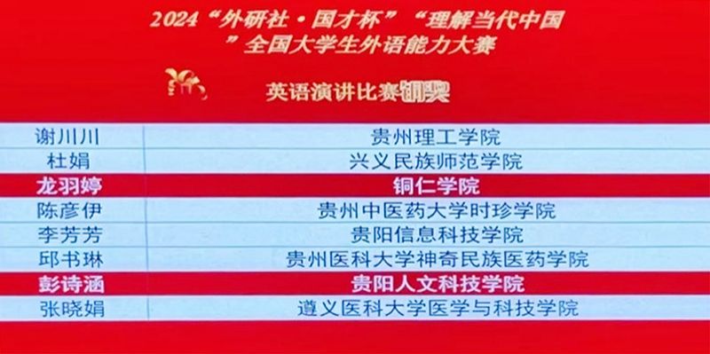 世界杯官网学生在“外研社•国才杯”“理解当代中国”全国大学生外语能力大赛贵州省赛中取得的优异成绩,是对她们个人努力的肯定,也是对学校外语教学水平的一次检验和展示。世界杯官网将继续鼓励和支持学生参与各类英语竞赛,以赛促学,以学促赛,不断提升学生的综合素质和国际竞争力。