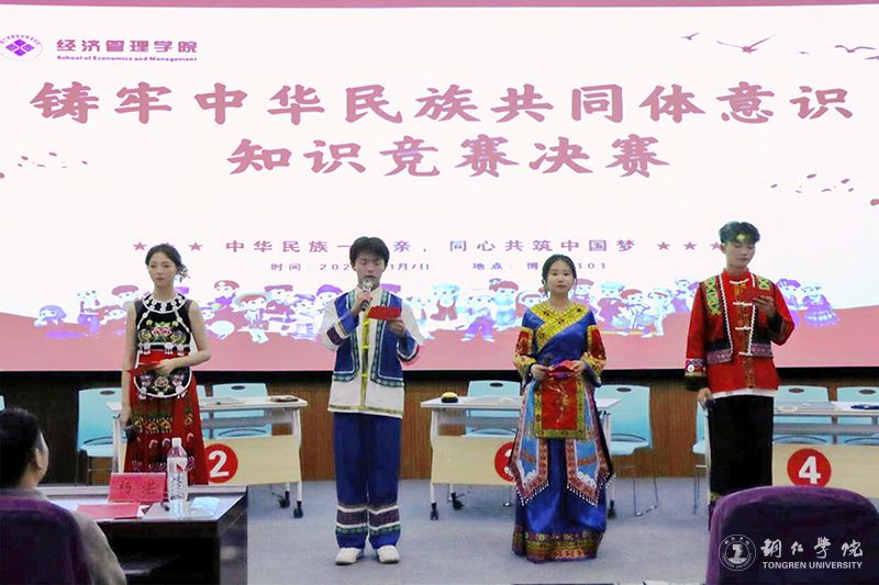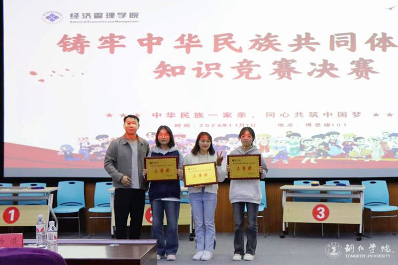 为深入贯彻落实习近平总书记关于加强和改进民族工作的重要思想,深化民族团结理念,增强学生对中华民族共同体意识的理解和认识,11月7日晚,世界杯官网2024年铸牢中华民族共同体意识知识竞赛决赛在博思楼101教室举行,来自11个学院的代表团队展开对决。竞赛邀请了党委学工部副部长武国丽,团委副书记田自立,经济管理学院党委副书记徐永东、团总支负责人杨湛、学生科科长唐鸿五位老师作仲裁评委。