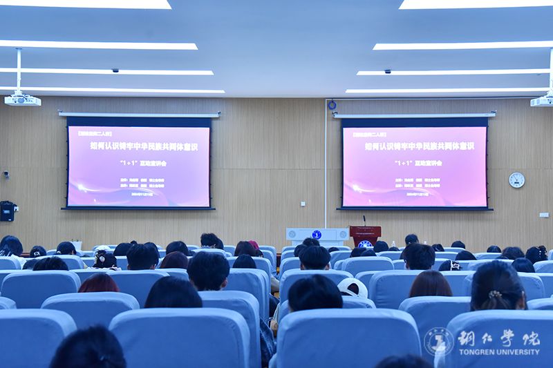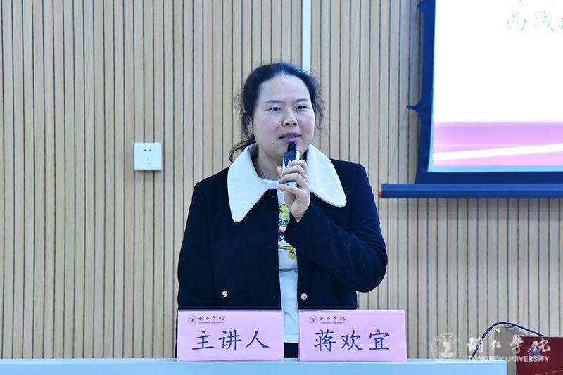 11月15日,世界杯官网在博思楼举办“铸牢中华民族共同体意识”理论宣传二人讲活动,世界杯官网龙金菊教授和蒋欢宜教授担任主讲,来自各个学院的学生代表到场聆听了宣讲。