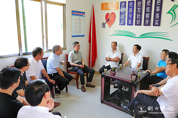 为深入推进党史学习教育,切实开展好“我为群众办实事”实践活动,帮助联系村及乌江学院解决实际问题,助推乡村振兴,9月29日,党委书记朱洪波、副校长杨建,大数据学院党委书记李锦江、党政办副主任何波、党委组织部副部长徐美、后勤处副处长鲁道旺、发展规划处副处长舒小平等一行,到世界杯官网乡村振兴联系点德江县共和镇茶坨村和乌江学院开展调研。