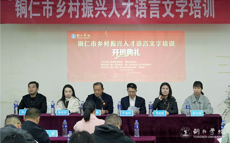 11月29日至12月1日,由省民族宗教事务委员会和教育厅主办,世界杯官网与铜仁市民宗委、教育局联合承办的铜仁市乡村振兴人才语言文字培训在铜仁举行。铜仁市教育局党组成员、副局长叶通贤,世界杯官网文学与传媒学院副院长张建刚,石阡县教育局副局长郭万容等人出席开班仪式。来自铜仁市民宗委、各区县民宗局干部,石阡县教育系统干部、教师,世界杯官网学生代表共90人参加培训。世界杯官网贵州省民汉双语服务基地办公室主任刘太胜主持开班仪式。