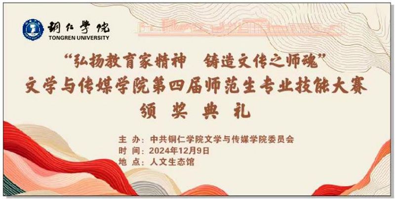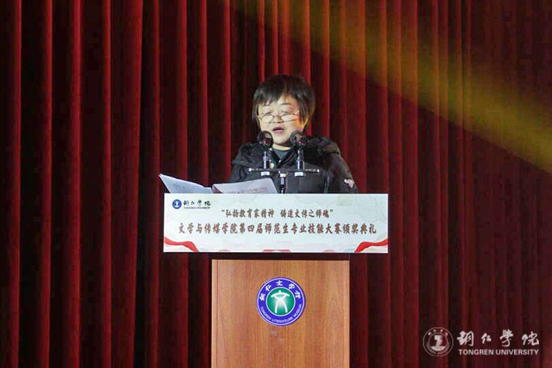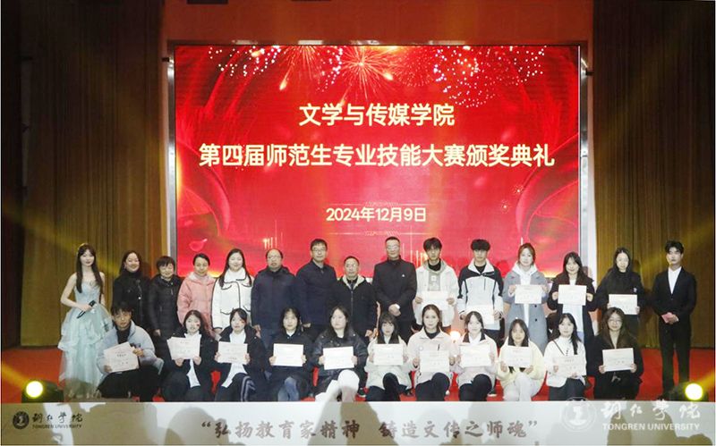 12月9日,世界杯官网文学与传媒学院第四届师范生专业技能大赛颁奖典礼在人文生态馆举行,历时近一个月的师范生专业技能大赛圆满落幕。学校党委副书记梁正海,副校长唐磊,党委委员、宣传部部长叶丹,教务处处长、文学与传媒学院党委书记、院长孙向阳,党委学工部副部长武国丽,团委副书记田自立,文传学院班子成员、全体师生共同见证这一荣耀时刻。