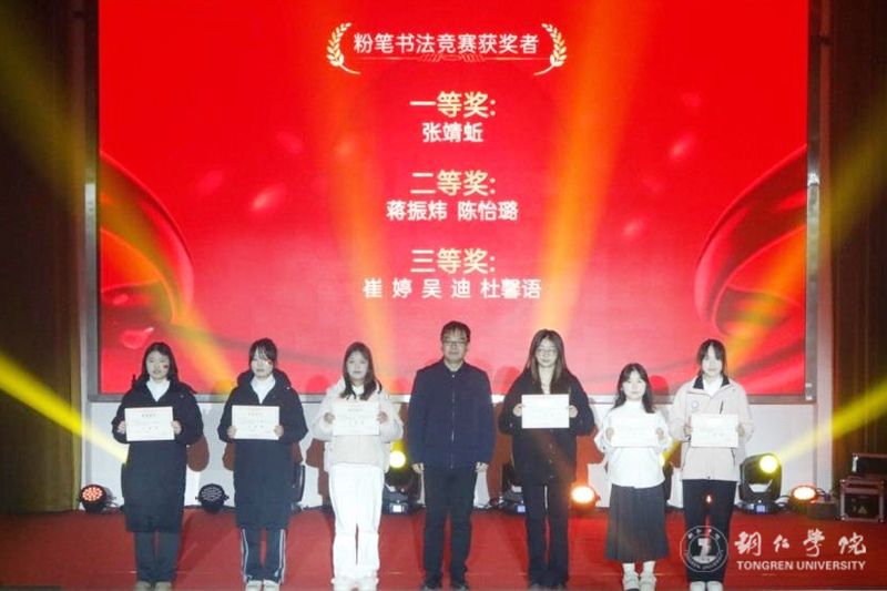 颁奖环节,出席领导嘉宾为获奖同学颁发荣誉证书并合影留念。典礼现场,学院师生还联袂呈现了一场精彩纷呈的文艺表演。啦啦操活力四射,配乐诗朗诵《青春》饱含深情,小提琴演奏《梁祝》悠扬婉转,书法展示与古筝弹奏《渔舟唱晚》古韵盎然,合唱《我和我的祖国》激昂澎湃,为典礼营造了浓厚的艺术氛围。