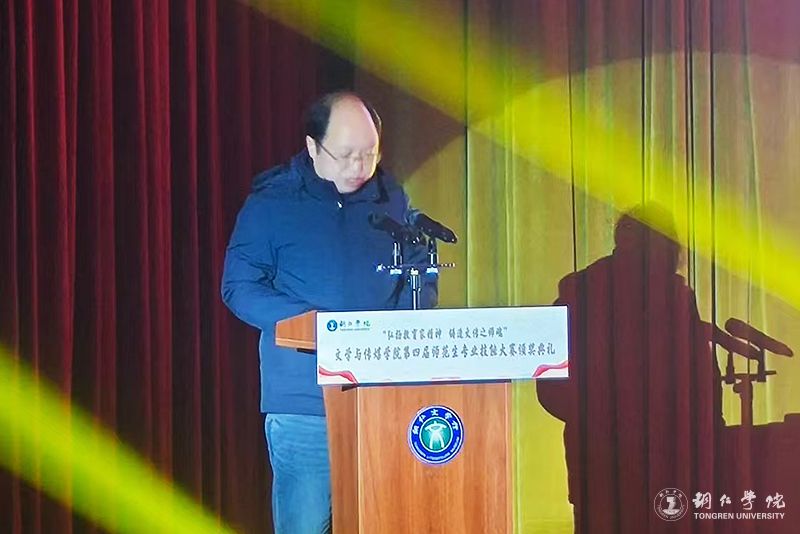 典礼上,孙向阳为活动致辞。他指出,师范技能大赛旨在以赛促训、以赛促学、以赛促教,提升学生从师任教能力与教育教学基本功,培育具有先进教学理念与扎实技能的教师后备力量。文学与传媒学院一直高度重视师范专业建设,注重师范生教师素养与基本功训练。去年成立的“卓越人才”职业技能训练中心,通过训练营模式有效提升了学生在“三字”书写、语言表达、写作及课堂教学等方面的能力,学生在省级以上赛事中屡获佳绩。他强调,教育家精神是教育前行的指引,要求师生不仅具备扎实专业知识,更要有高尚师德、创新教学理念与对教育事业的热忱。希望全体师生以此次大赛为契机,继续弘扬教育家精神,锤炼专业技能,努力成为“四有”好老师。