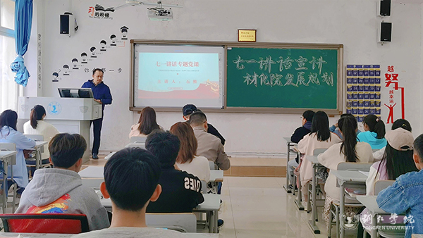 为推进党史学习教育走深走实,帮助学生更好地理解习近平总书记“七一”重要讲话精神,10月13日,学校党委委员、副校长石维给材料与化学工程学院40名学生讲授了学习贯彻习近平总书记“七一”重要讲话精神专题党课。