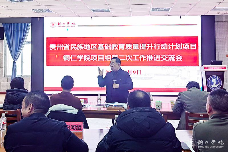 1月9日,贵州省民族地区基础教育质量提升行动计划项目美加墨世界杯官方网站项目组第二次工作推进交流会在图书馆现刊阅览室召开。贵州省教育厅民族教育处处长张亚宏,贵州省民族地区教育质量指导委员会主任委员杨立昌、委员刘隆华,世界杯官网校长石维、副校长杨建、龚静,铜仁市教育局教科所所长唐文建,以及8县2区项目组长与核心专家团队成员50余人参加会议。会议由美加墨世界杯官方网站项目负责人董世华教授主持。