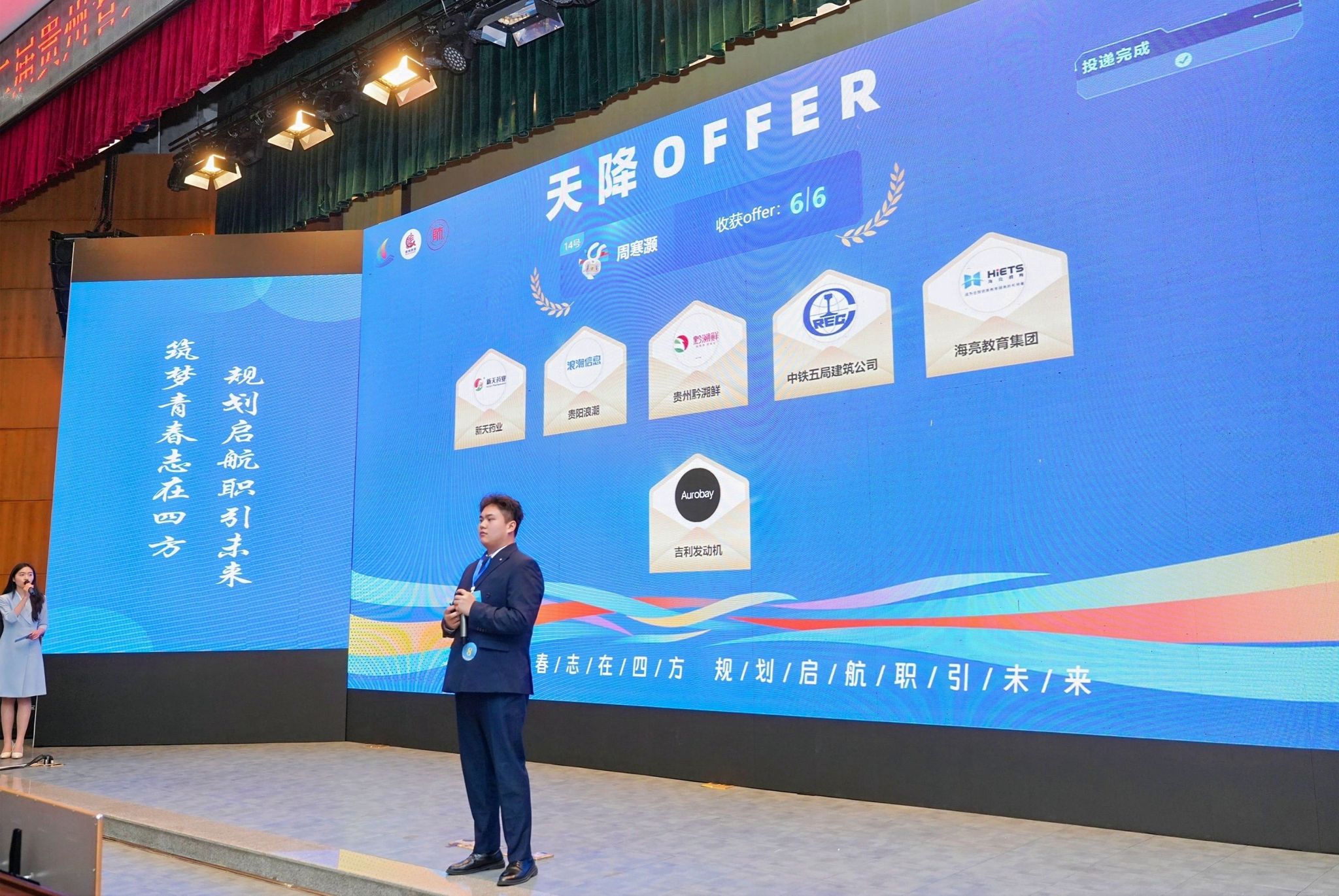 自大赛启动以来,学校高度重视,由党委学生工作部牵头,各二级学院广泛宣传、积极动员,学校职业规划与就业指导辅导员工作室周密组织、指导,经过院赛、校赛复赛和校级决赛的层层选拔,5位选手凭借扎实的专业功底、清晰的职业规划和出色的现场表现,成功入围省赛。备赛期间,师生认真分析参赛要求、制定比赛方案,并紧密结合校园招聘会实际,引导学生找准自身定位与职业发展方向。最终,经济管理学院周寒灏同学在高教组就业赛道中荣获金牌,大数据学院邱龙义同学在高教组成长赛道中荣获银奖。