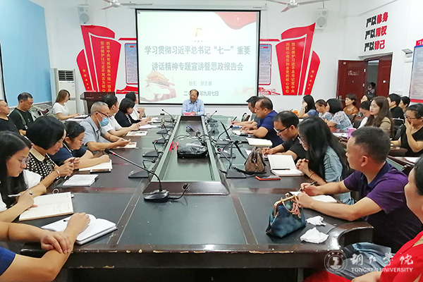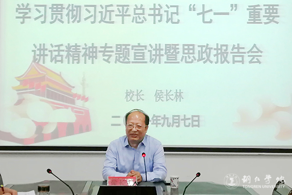 9月7日,校长侯长林到教育学院作习近平总书记“七一”重要讲话精神专题宣讲并讲授思想政治理论课。教育学院党委副书记胡慧主持报告会;教育学院全体教师及部分学生代表聆听报告。