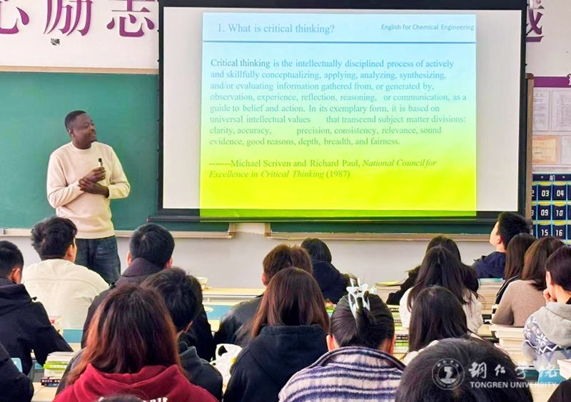 本次化工专业英语课堂以“学习什么是批判性思维以及批判性思维的重要性”为主题,深度融合科技前沿知识与国际化教学理念,助力材化学院学子在全球视野下成长为具有创新竞争力的工程人才。此次外教课是该院推进教学改革的重要实践之一,通过融合国际先进教育理念,强化学生解决复杂工程问题的核心素养。