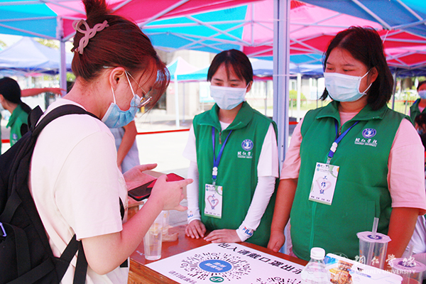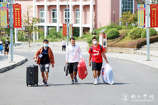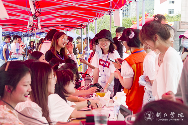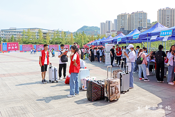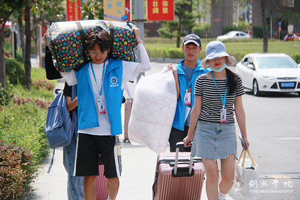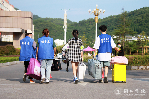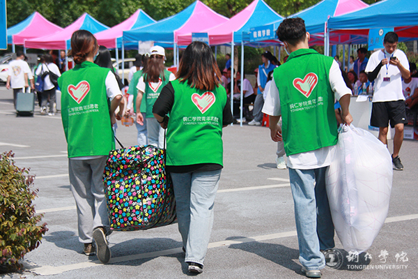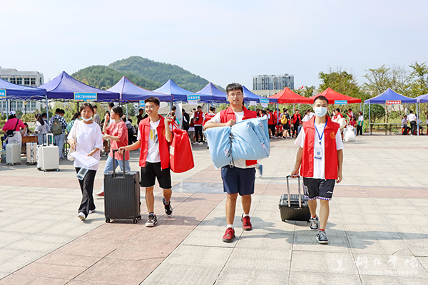 迎新活动主要集中在南大门和明德湖广场,放眼望去,帐篷林立。校园内各主道上,随处可见志愿者匆匆忙忙的身影,他们或拉着行李,或扛着麻袋,穿梭在南大门和明德湖广场、广场和学生宿舍之间。一路上,志愿者们和新生们“互诉衷肠”,志愿者分享他们的学习和生活心得,新生则吐露面对新环境的真实情感,此时此景连同欢声笑语一起汇成了一道靓丽的校园风景线。