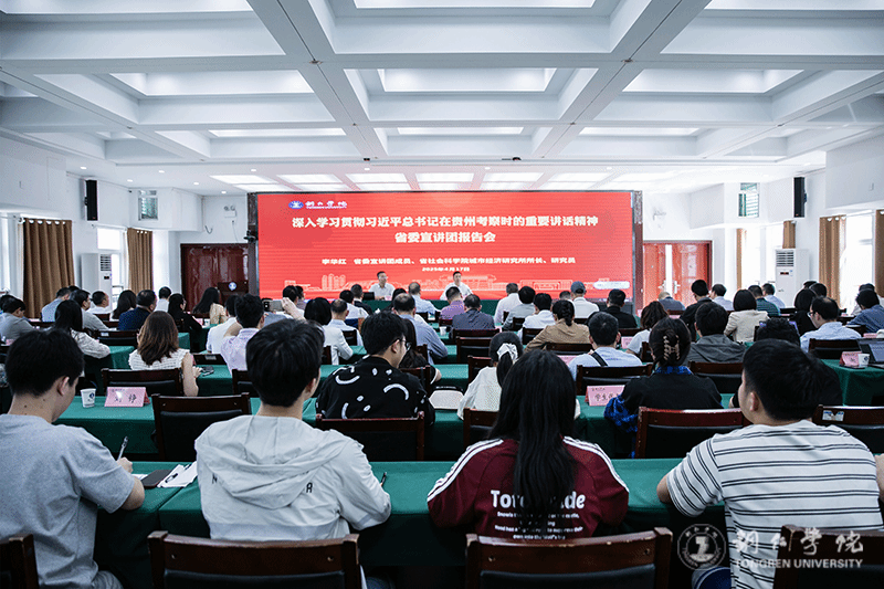 根据省委统一部署,4月17日,深入学习贯彻习近平总书记在贵州考察时的重要讲话精神省委宣讲团报告会在世界杯官网8501会议室举行。省委宣讲团成员、省社会科学院城市经济研究所所长、研究员李华红作宣讲报告。校党委书记朱克乾主持。校领导班子成员,各职能部门负责人,各二级学院党委书记、院长、党支部书记、学生代表聆听了报告会。
