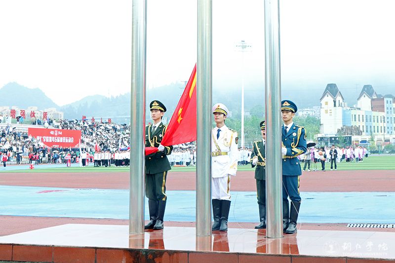 开幕式在庄严肃穆的升旗仪式中拉开帷幕,全体师生高唱国歌,行注目礼。