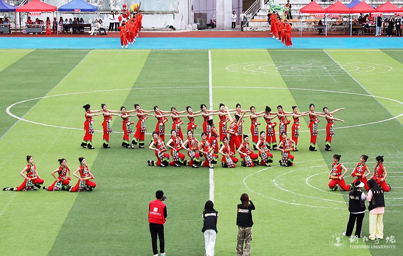 闭幕式上,还举行了“明德印记·五彩青春”文艺表演。大学生啦啦操俱乐部、大学生武术俱乐部、大学生民族健身操俱乐部、大学生艺术团的同学们带来了《时代节奏》《中华武魂》《再唱山歌给党听+土家摆手舞》《众人划桨开大船》《家乡山水美》等节目,不断激励全体师生在田径场上挥洒汗水,在人生赛道上勇往直前。