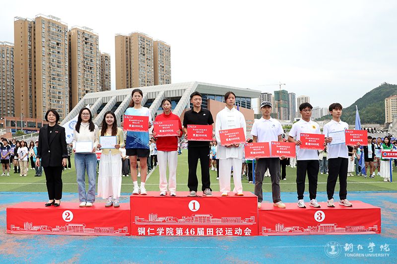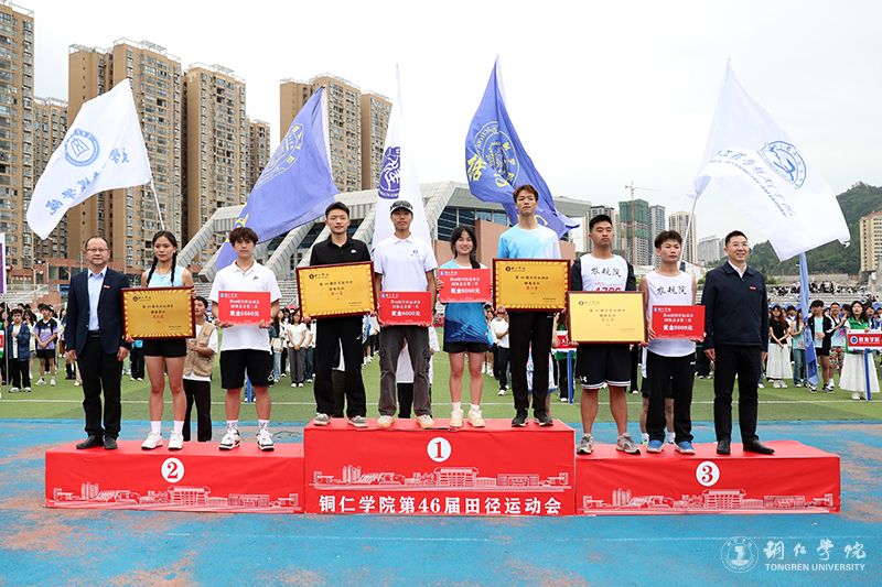 闭幕式上,还为在省级比赛和本届运动会中打破校级记录的同学以及体质健康测试毕业成绩优秀等级的同学进行了颁奖。值得一提的是,在2024年7月举行的贵州省大中学生田径锦标赛男子5000米项目比赛中,大健康学院麻二同学以16分21秒17的成绩,打破了1991年11月曾继强创下的16分29秒的校记录成绩;在2024年7月举行的贵州省大中学生田径锦标赛女子800米项目比赛中,大健康学院周逸芳同学以2分31秒82的成绩,打破了2010年7月唐梅创下的2分33秒的校记录成绩;在2024年7月举行的贵州省大中学生田径锦标赛男子1500米项目比赛中,文学与传媒学院张俊同学以4分10秒13的成绩,打破了2023年7月举行的贵州省田径锦标赛上他自己创下的4分11秒61的校记录成绩;在2024年7月举行的贵州省大中学生田径锦标赛男子100米项目比赛中,大健康学院唐庆同学以11秒24的电计成绩,打破了2012年10月王闯创下的11秒34的电计校记录成绩。另外,有3名同学在本届运动会上打破了3000米竞走和1500米竞走的校记录成绩。