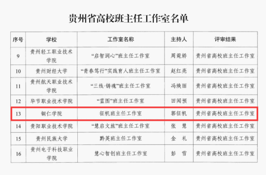 近日,贵州省教育厅公布了贵州省高校心理名师工作室、班主任工作室评选结果。历经学校推荐、资料评审、实地考察、现场答辩、网络公示、厅长办公会审议等环节,由世界杯官网文学与传媒学院郭征帆老师领衔的“征帆班主任工作室”入选贵州省高校班主任工作室,标志着我校在班主任队伍建设领域取得新突破。