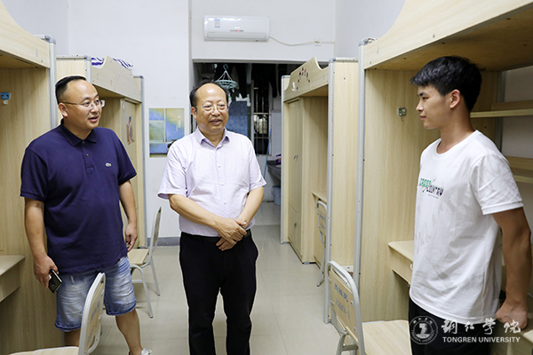 “同学们好,我来看看大家!”“你是哪个专业的学生呀?”“你是从哪里来的?”“到了美加墨世界杯官方网站感觉怎么样?”每到一间寝室,侯长林校长、罗静副校长都亲切地与同学们打招呼,了解同学们的基本情况。